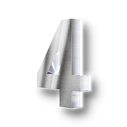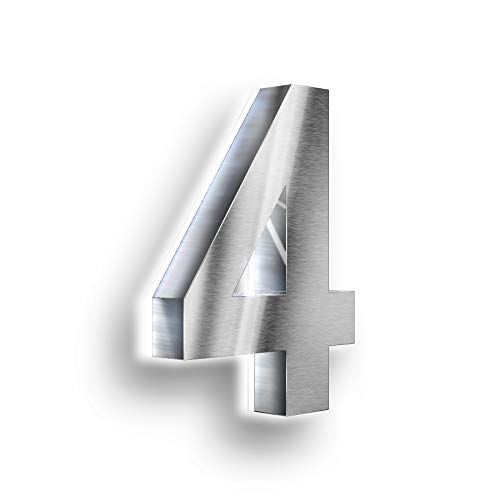 Metzler-Trade, numero civico in acciaio inox V2A, con illuminazione indiretta in 3D a LED bianco, inossidabile, classico, a prova di spruzzi d'acqua, Argento 2.00W, 12.00V