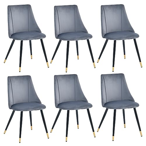 MEUBLE COSY Set di 6 Sedie da Pranzo Imbottito Senza Braccioli con Schienale Tessuto in Velluto per Cucina Sala Soggiorno, Gambe in Metallo, Grigio + Oro, 52.5x49.5x83cm, 6 unità