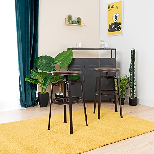 MEUBLE COSY Amat Walnut - Set di 2 sgabelli da bar, altezza regolabile in legno di metallo, design bistro Pub, sedia con poggiapiedi, base in ferro, girevole a 360, noce, 46,5 x 46,5 x 66,5 x 74 cm