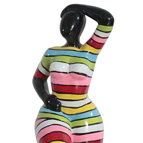 Meubletmoi Statua donna in piedi posa manichino in resina con strisce multicolore, 13 x 35 x 12 cm - Lady Stripe