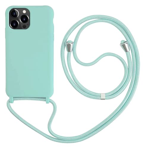MEVIS Cover Compatible con iPhone 13 PRO Max,Cover con Pratico Cordino,con Cordino TPU Corda Silicone Case Bumpe-Verde Chiaro