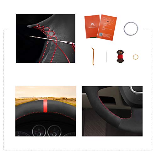 MEWANT Coprivolante auto personalizzato a punto a mano nero in pelle scamosciata per Audi A3 (8P) 2006-2013 A4 (B8) 2005-2012 A5 2008-2012 per Seat Exeo 2009-2012