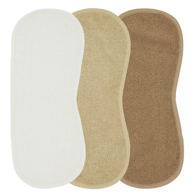 Dettagli del prodotto: Assorbente Asciugatura rapida Appositamente sagomato per la spalla Set composto da tre panni per il ruttino Colori: bianco/beige/marrone Materiale e cura: Materiale: 100% cotone Lavabile fino a 40°C Utilizzare poco detersivo Dimensioni e peso: Dimensioni: 53 x 20 cm Incluso nella consegna: 3 panni per il ruttino