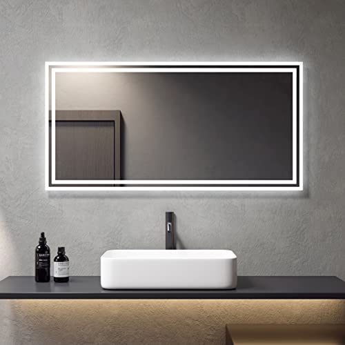Meykoers Specchio da bagno con led, specchio led 120x60cm, specchio da parete regolabile colore bianco freddo/bianco caldo con funzione antiappannamento, in orizzontale o in verticale