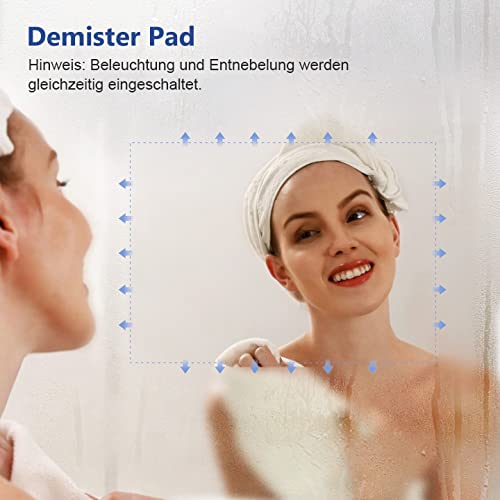Meykoers Specchio Bagno LED 70 x 50 cm con Anti-appannamento con dimmerabile, bianco caldo / bianco freddo / neutro, 3000-6500 K