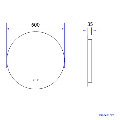 Dimensioni specchio rotondo: diametro 60 cm, colore della luce: luce bianca calda / luce bianca fredda / luce mista (3000-6500K), luce calda morbida, protezione degli occhi umani.
