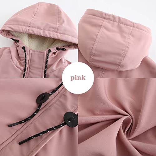MEYOCEYO Parka Donna Invernale Spessa Calda Giacca con Cappuccio Giubbotto Parka Lungo Outdoor Antivento Casual Cappotto Rosa S