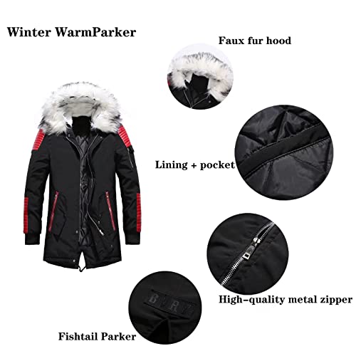 MEYOCEYO Parka Uomo Invernale Lungo Caldo Giubbotto con Cappuccio Imbottito Cotone Antivento Casual Giacca Cappotto Nero-Bianco M