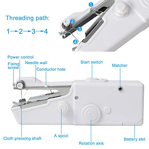 MEYUEWAL Macchina da Cucire Portatile, Mini Macchina da Cucire Strumento Manuale Portatile Wireless Professionale Casa E Viaggio per Vestiti, Stoffa, Tenda,e Fai-da-Te (Bianco 1) (Bianco)