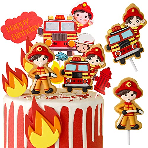 MEZHEN Decorazioni Torta Pompiere Decorazioni per Torte Compleanno Topper per Torte Happy Birthday Camion dei Pompieri Decorazioni per Cupcake Topper Decorazioni per Feste 10 Pezzi B