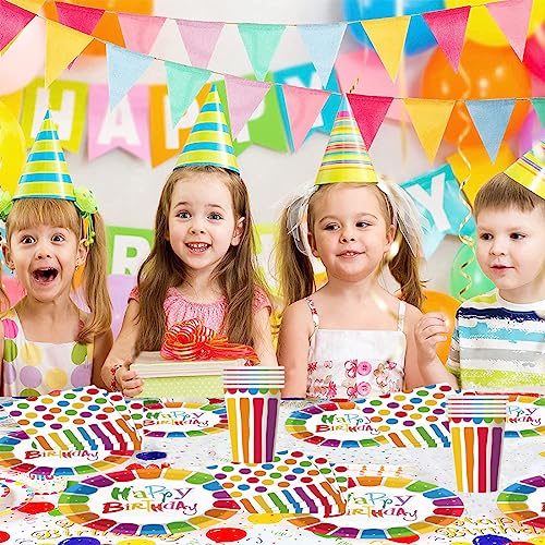 MEZHEN Stoviglie per Feste Arcobaleno Stoviglie per Feste di Compleanno Decorazioni per Feste di Compleanno per Bambini Include Tovaglioli Tazze Piatti 10 Ospiti