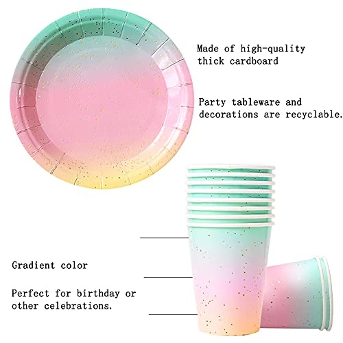 MEZHEN Stoviglie per Feste di Compleanno Decorazioni Arcobaleno Stoviglie per Compleanno Piatti Bicchieri di Carta Tovaglioli Forniture per Feste per Baby Shower Matrimonio Ragazza 10 Ospiti
