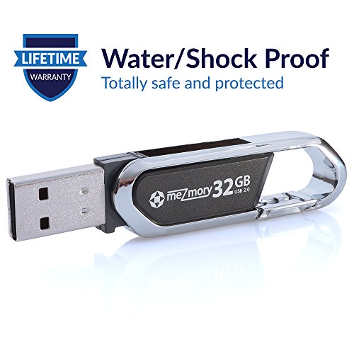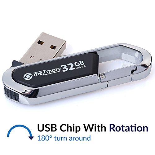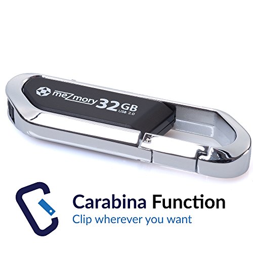 MeZmory Chiavetta USB 2.0 32GB con moschettone - Impermeabile & Veloce - Estremamente Resistente - Fabbricata in Metallo Flash Drive - Ideale per portachiavi 32 gb - in Argento e Nero della