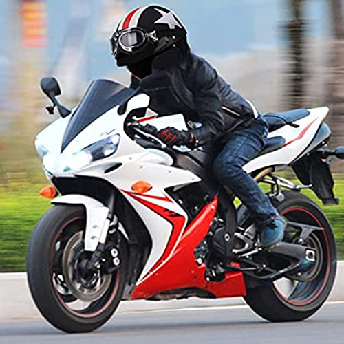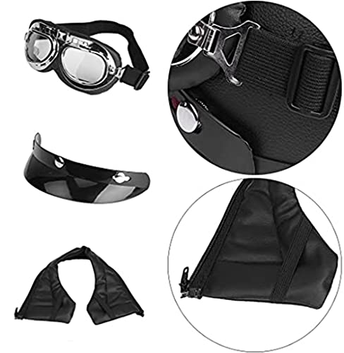 Moto Mezzo Casco,Casco Aperto con Occhiali,Certificato DOT per Scooter Motorini Motocicli Casco Sicurezza Sportivastile Retro Donne Uomini A,(54-62CM)