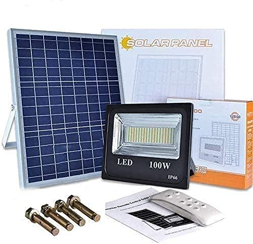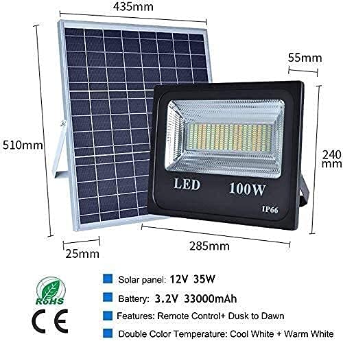 MFLASMF Proiettore a LED Luci di inondazione solari a LED da 100 W | Luci solari da Esterno dal Tramonto all'alba con Telecomando | Faretti solari Impermeabili IP66 per luci di Sicurezza s
