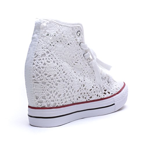 MForshop Scarpe Donna Sneakers Casual Zeppa Interna Ginnastica Pizzo Platform k9xx69b-09 - Bianco, 36
