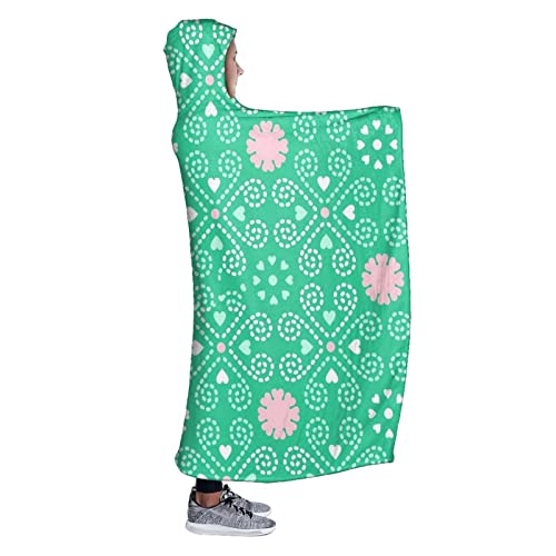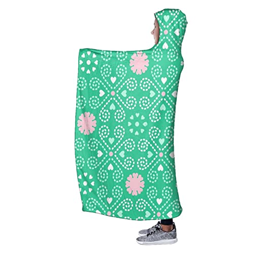 MGCEDLTD Coperta morbida in pile sherpa, coperta con cappuccio a righe bianche con fiore, con cappuccio indossabile per adulti