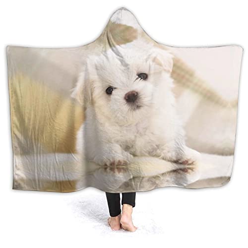 MGCEDLTD Coperta in morbido pile sherpa, bella coperta con cappuccio per cani maltesi, con cappuccio indossabile per adulti