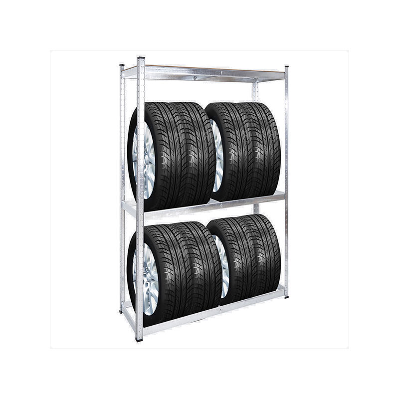 POGGIA GOMME PNEUMATICI OTTO POSTI ACCESSORI AUTO MOTO TRE LIVELLI AD ALTEZZA VARIA Porta gomme a tre livelli per lo stoccaggio sicuro di pneumatici e accessori per auto. Il livello superiore è costituito da un robusto pannello MDF in cui è possibile riporre gli accessori e gli utensili, in modo da poter garantire più spazio nel garage. Nei due livelli inferiori è possibile deporre un totale di otto pneumatici, ovvero quattro pneumatici per livello. I singoli livelli sono di altezza variabile, in modo che possano essere adattati all'altezza delle ruote da posare. Il prodotto è semplice da montare e può essere utilizzato senza grandi sforzi e senza strumenti aggiuntivi direttamente dopo la consegna! Grazie alla zincatura completa, il ripiano è protetto dall'ossidazione e quindi ideale per l'uso in garage. DIMENSIONI: CONTENUTO: 1 - POGGIA GOMME A 3 LIVELLI PER 8 POSTI