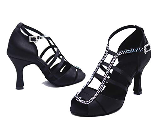 MGM-Joymod Donna Peep Toe Cut-Out strass Samba Salsa Tango Salsa Ballo Latino Moderno Scarpe Da Ballo Sandali per Festa di Nozze, Tacco nero 9 cm., 37 EU