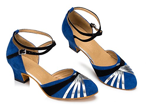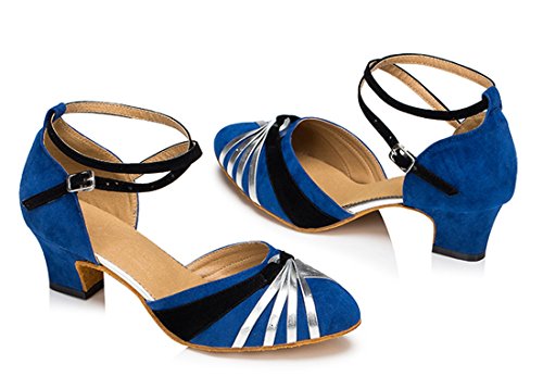 MGM-Joymod Donna Punta chiusa Cinturino alla caviglia Kont Tango Salsa Salsa Salsa Latino Moderna Scarpe da ballo Sera Sandali da sposa, Tacco blu scamosciato 5 cm, 40.5 EU