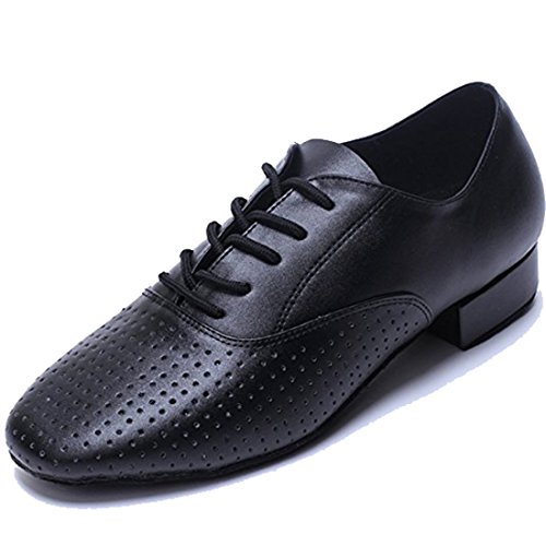 MGM-Joymod - Scarpe da ballo classiche da uomo, stile classico con lacci in pelle, punta chiusa, stile sociale, dacne, salsa, tango jazz, romba, Black Breather - Tacco da 2 cm, 39 EU