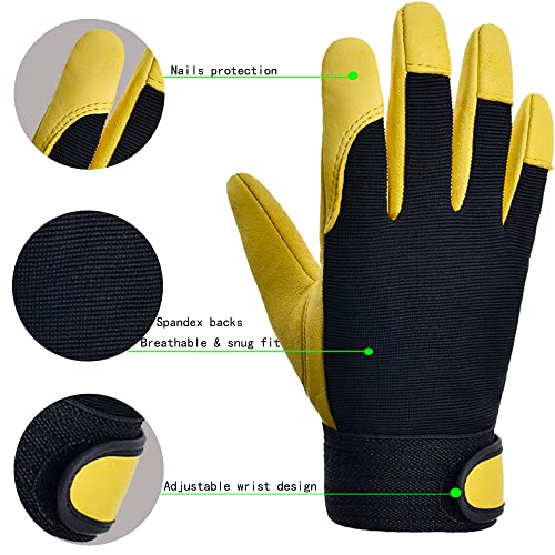 MGOOL Guanti da giardinaggio in pelle per donne e uomini, a prova di spine, guanti da lavoro da giardino durevoli (giallo, 1 paio, m)