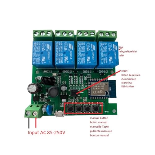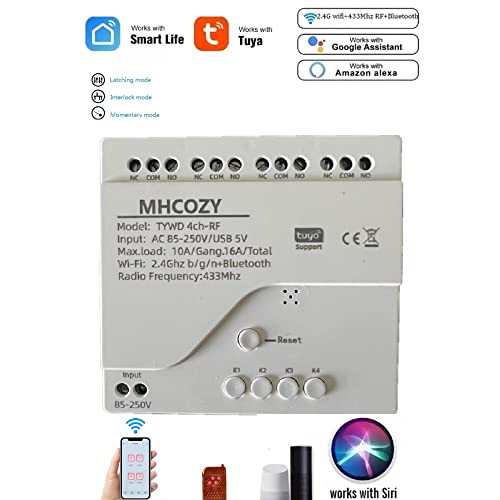 MHCOZY Modulo interruttore relè a contatto secco wireless Smart WiFi a 4 canali USB 5V AC 85-250V, telecomando app Tuya Smart Life, lavora con Alexa Google Home