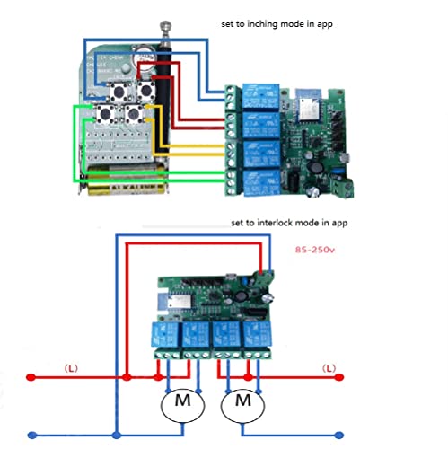 Ampio utilizzo, relè WIFI a 4 canali MHCOZY, con 3 modalità di lavoro, modalità autobloccante momentanea e interblocco, è possibile impostare la modalità come canale, regolare il tempo momentaneo da 2 secondi a 1 ora nell'app Smart life. Apriporta del garage WIFI fai-da-te, automatizza tenda cieca dell'otturatore della porta del cane di pollo