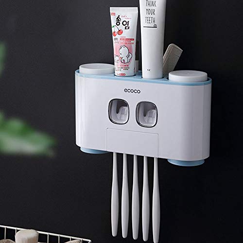 MHTECH -Dispenser Automatico di Dentifricio e Spazzolino Holder Set con Montaggio a Parete - Hands Free 2 Dentifricio Squeezers con 5 Pennelli Set con 4 Tazze- Adatto per famiglie