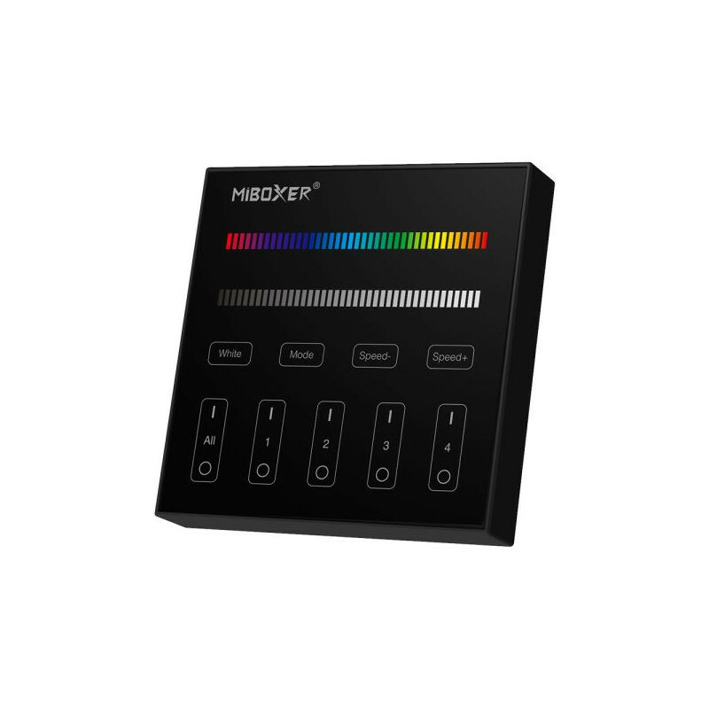 Wall Tactile telecomando per LED RGBW. Funziona con 2 batterie AAA (non incluse). Ti permette di controllare le piastre, i punti o i nastri RGBW. Funziona in Radio Frequenza: lunga distanza fino a 30m. È possibile controllare l'intensità della luce / accendere- spegnere. Nove modalità di dinamismo disponibili, 16 milioni di colori. Dimensioni: altezza: 16mm, larghezza: 86mm, lunghezza: 86mm. Garanzia 2 anni. Il nostro telecomando Tactile per LED RGBW. Questo elegante telecomando a parete consente di gestire facilmente le piastre RGB e RGBW, i punti e i nastri, aggiungendo un tocco personalizzato alla vostra illuminazione. Caratteristiche principali: Alimentato da 2 batterie AAA (non incluse), offrendo prestazioni affidabili e costanti. Controllo delle lastre, punti e nastri RGB e RGBW per un'esperienza di illuminazione personalizzata. Opere in Radio Frequenza con una lunga gamma fino a 30 metri, offrendo grande convenienza nel controllo della vostra illuminazione. Controllo della luce