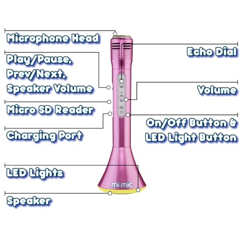 Mi-Mic - Dispositivo per Karaoke con Microfono e Altoparlante, Wireless, Bluetooth, con luci a LED