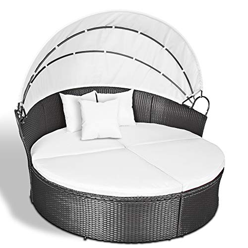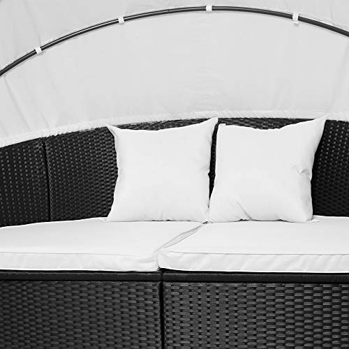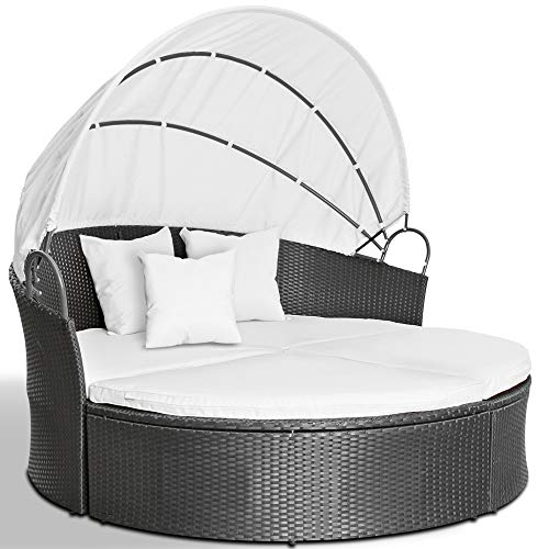 MIADOMODO Isola da Giardino in Rattan | 180 cm, con Cuscini e Tettuccio Parasole, Colore a Scelta | Set Mobili da Giardino, Arredo da Esterno, Letto Isola, Lettino a Conchiglia (Grigio)