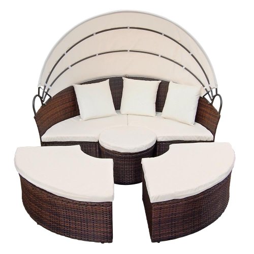 Miadomodo Sdraio lettino prendisole da giardino a conchiglia in polyrattan Ø 180 cm colore marrone