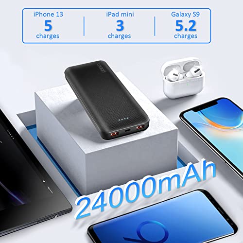 Miady Power Bank 24000 mAh PD 20 W QC3.0 Power Bank USB C (Input &Output), 3A Ricarica Rapida Batteria Esterna Compatibile con iPhone, iPad, Samsung, Galaxy, Tablet Nero