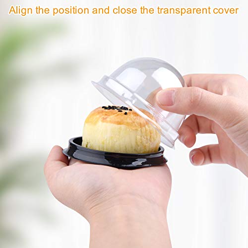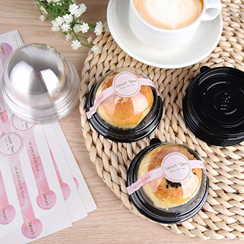 MIAHART Confezione da 50 mini contenitori per cupcake in plastica trasparente con adesivi per etichette da 50 pezzi Mini scatole per dolci da forno Scatole per muffin Scatole per caramelle, Nero