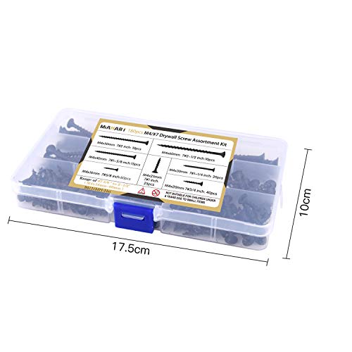MIAHART 180 pezzi M4 Assortimento di viti per legno nero Vite autofilettante a filetto grosso Punto 7 Viti per cartongesso per cartongesso Mobili e armadio in legno a secco