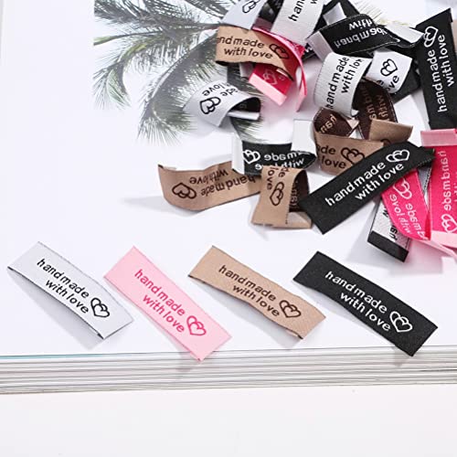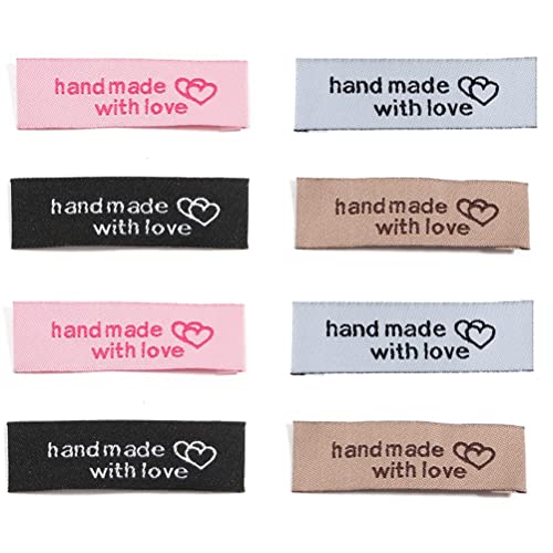 MiaLover 120 etichette fatte a mano, in tessuto, per vestiti, con amore, per fai da te, cucito, 4 colori