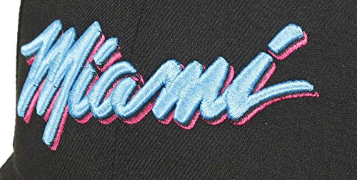 Elegante cappellino da baseball nero con una scritta di Miami ricamata sul davanti | Ricamo del logo della squadra sul lato destro del cappello | Bandiera di New Era a sinistra | Un accessorio indispensabile per tutti