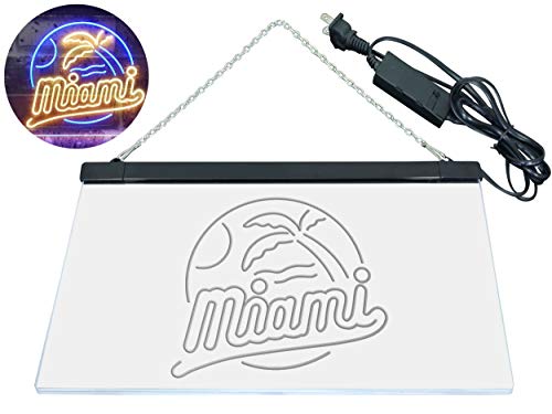 Miami Island Beach Dual Color LED Enseigne Lumineuse Neon Sign Bleu et jaune 300 x 210mm st6s32-i3565-by