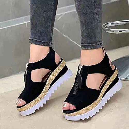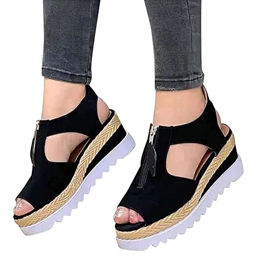 MIAOZHANG Donna Zeppe Sandali Eleganti Estivi Punta Aperta Spiaggia Sandals Beach Moda Espadrillas Casual Scarpe,1,EU 41