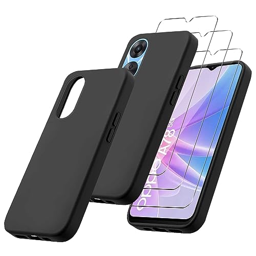 MIBZOR 4 in 1 Cover Compatibile con OPPO A78 5G (6.56") e 3 Pezzi Vetro Temperato Pellicola Protettiva, Nero Morbido Silicone Custodia Protettivo TPU Protezione Case