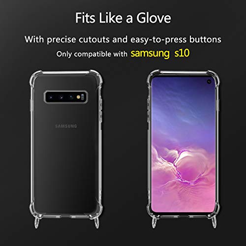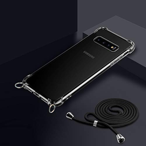 MICASE Cover con Cordino per Samsung Galaxy S10, Custodia a Tracolla Trasparente Morbido Silicone Necklace Regolabile Staccabile Shock Absorption Antiscivolo Protettiva Case in Nero