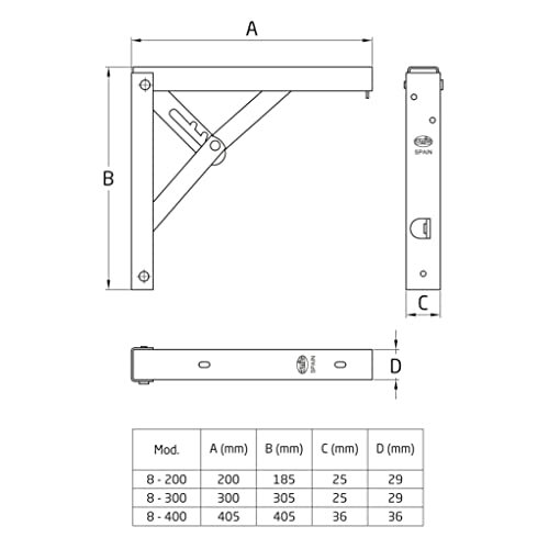 Micel, 37440, Cerniera, pieghevoli, 3 pos., 400 x 400, cromato