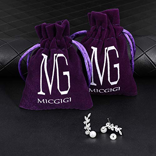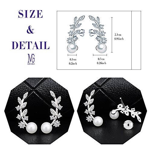 MICGIGI Orecchini da donna eleganti a forma di foglia, in argento Sterling 925 con zirconi, perla da 5 mm (argento)