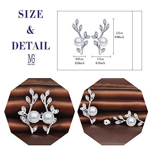 MICGIGI Orecchini da donna a forma di foglia, in argento Sterling 925, con perle da 6,5 mm