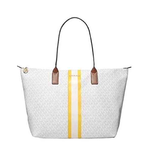 Michael Kors Borsa larga con logo a righe, Bianco brillante multicolore, Large
