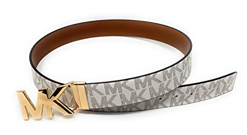 Michael Kors 1444 - Cintura da donna con logo MK come fibbia, misura XL, lunghezza 110 cm, larghezza 4 cm, colore: Bianco