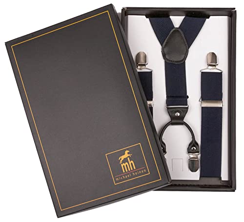 Michael Heinen Bretelle da uomo - Larghezza 3,5 cm con 4 clip in metallo molto resistente, taglia unica per uomini e donne regolabile ed elastico