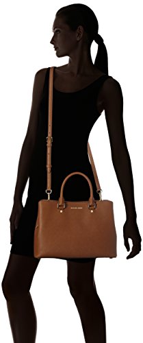 Michael Kors Savannah Large Leather Satchel, Borsa a Tracolla Donna, Marrone (Luggage), 24x11x33 cm (L x H x L)